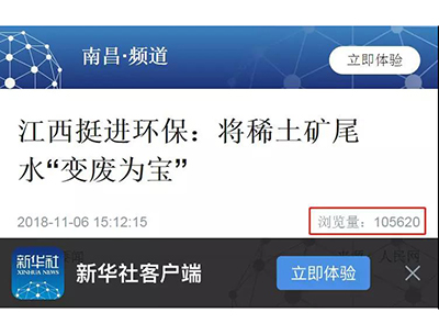 近日,新华社、人民网等媒体对mk网站_MK(中国)江西挺进环保有限公司龙南项目进行报道,介绍挺进环保公司采用自主研发的双级渗滤耦合技术,有效治理稀土矿山尾水污染,切实改善流域周围群众用水问题与下游用水安全,为江西省委、省政府实现消灭劣V类水的工作目标做出有力的贡献。该新闻的阅读量已超10万。