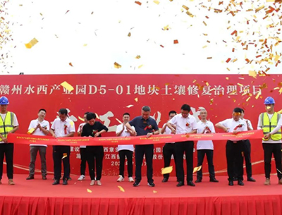 7月17日上午,mk网站_MK(中国)江西挺进环保科技股份有限公司在赣州水西产业园D5-01地块土壤修复治理项目建设现场举行开工仪式。