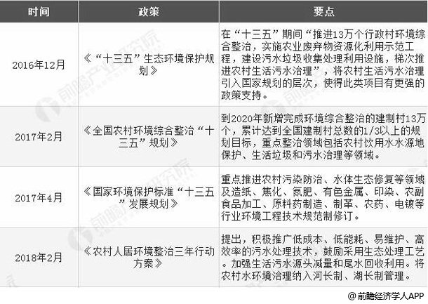 2016-2018年我国农村污水处理行业相关规划统计情况