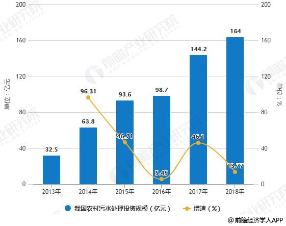 2013-2018年我国农村污水处理投资规模统计及增长情况预测