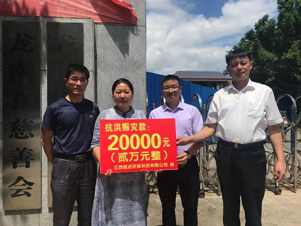 2019年6月,江西省赣州多地连降大到暴雨,龙南、兴国等地不同程度受灾,多处水位超历史最高。洪水肆虐,造成农作物受损、房屋倒塌、交通中断、塌方、桥梁及河提损毁通信、供电、水利等损失惨重。mk网站_MK(中国)旗下江西挺进环保科技有限公司快速响应,伸出援助之手发扬“一方有难、八方支援”的精神挺进环保龙南分公司、全南分公司积极联系当地政府部门捐款赈灾。